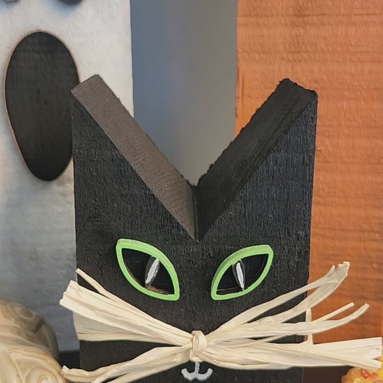 Each ghost, pumpkin, and black cat in this Halloween Wood Block Set starts as raw wood in my small woodshop. I personally cut, sand, and paint every piece, so you’re getting truly one-of-a-kind décor. The rustic finish brings warmth and charm to your Halloween display, and the sturdy, solid wood means they’ll last for many seasons to come.