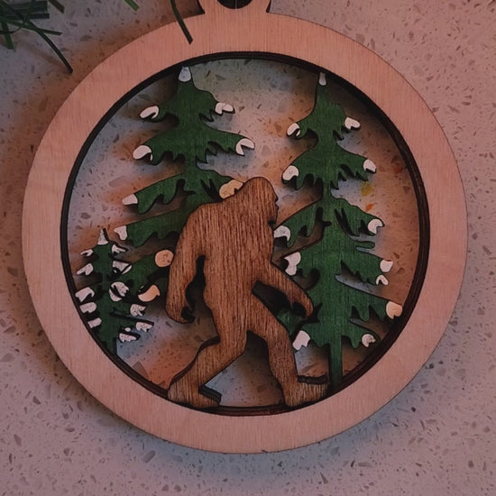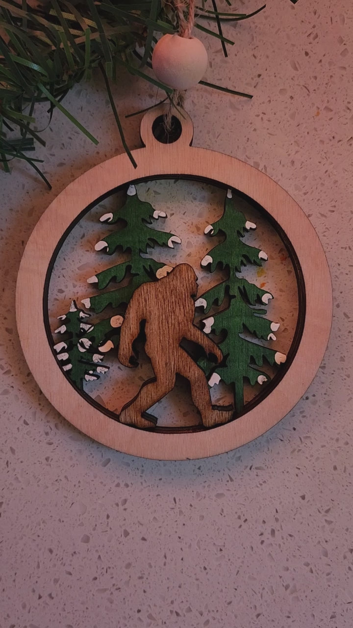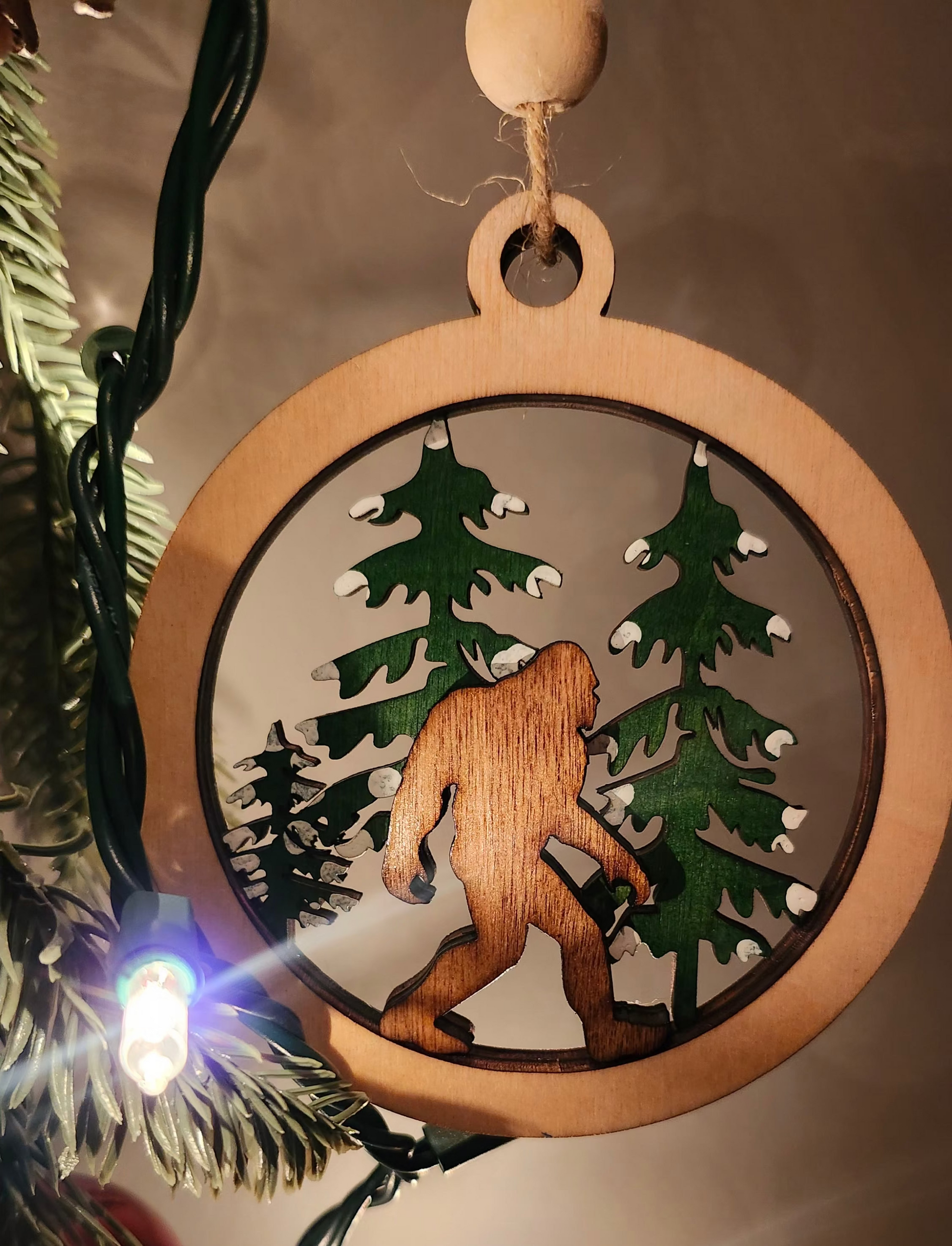 # Sasquatch Big Foot Wood Holiday Ornament-I design and craft each Bigfoot ornament myself, so every piece carries a personal touch and rustic charm. This isn’t just another holiday decoration — it’s a quirky keepsake that brings personality and warmth to your tree.