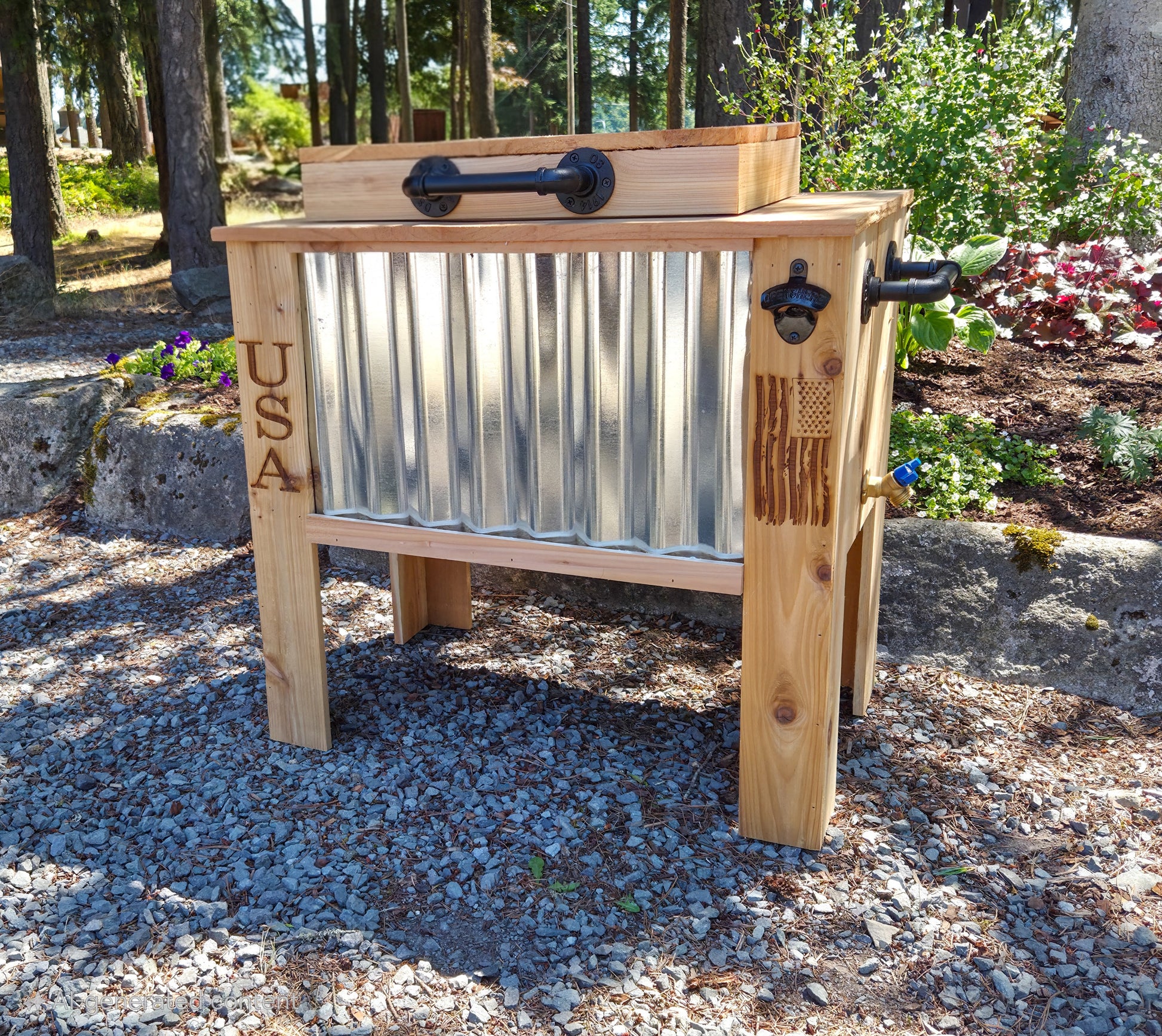 Handmade Wood Cooler Ice Chest, Rustic Outdoor Drink Station for Patio, Tailgates, Camping, BBQs, Rustic Gift for Him, Wood Tin Ice Cooler