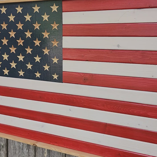 Wood American Flag, Rustic Flag Sign, Classic Old Glory-Choose from Red, White & Blue or Black & White