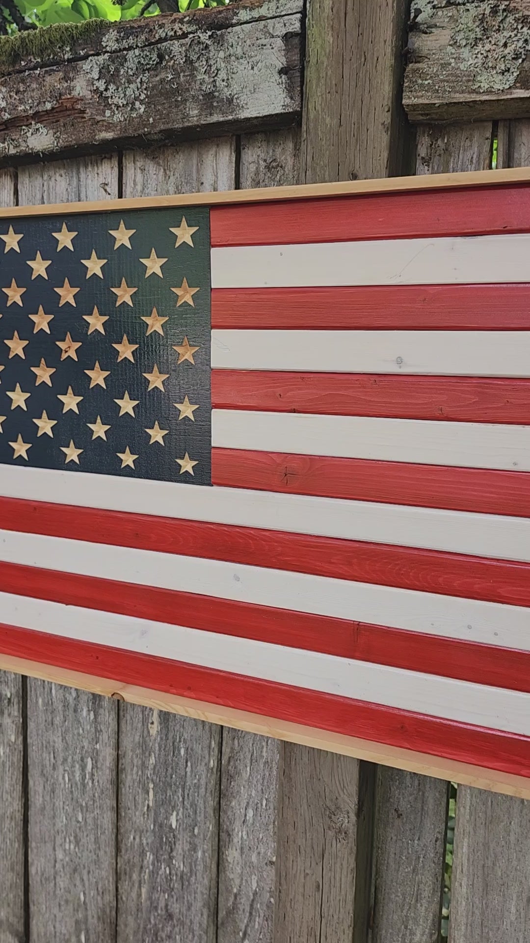 Add charm to your farmhouse decor with this rustic, handcrafted wood flag wall sign. Each piece is carefully made from real wood in my workshop, giving it a unique character that blends patriotic pride with timeless craftsmanship. Choose from classic colors (Red, White & Blue) or clean, modern colors (Black & White).